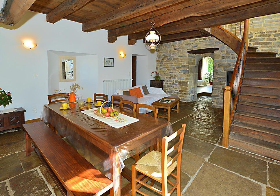 La maison se compose d’une cuisine très bien équipée, avec notamment un four à pyrolyse, un four à micro-ondes, d’une cafetière électrique, d’un grille-pain, d’un mixeur, d’un auto cuiseur, d’un réfrigérateur congélateur et un lave-vaisselle. Le grand séjour met à disposition un téléviseur, un canapé convertible et un poêle à bois, la maison possédant le chauffage central. Le reste se compose d’une salle d’eau, d’un VC indépendant et de trois chambres pour accueillir au maximum 8 personnes. A l’extérieur un espace de 300 m², clos et de plein pied, permet de se retrouver autour du barbecue et du salon de jardin. Pour les plus sportifs, une table de ping-pong est installée à l’abri de la petite grange. Le propriétaire permet à ceux qui le souhaitent de garer leur véhicule, voiture ou moto dans une grange fermée.